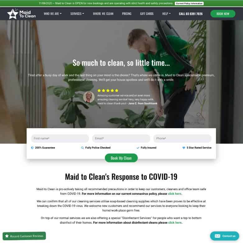 Even better, Maid To Clean has a customisable payment rate based on either time or results, while also taking the stress out of booking services through their industry-leading booking system.