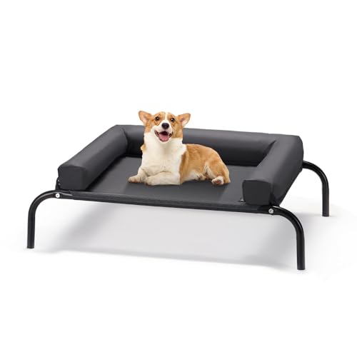 Veehoo Cooling Elevated Dog Bed Add Removable Waterproof Bolster Cushion Mat, Raised Pet Cot with Breathable Teslin Mesh, No-Slip Feet, Dog Sofa Bed for Indoor Outdoor, XLarge, Black CWC2331B